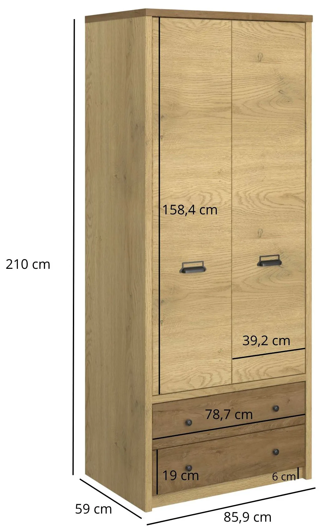 Szafa dwudrzwiowa z szufladami Sevisso 11X dąb cremona + dąb lefkas
