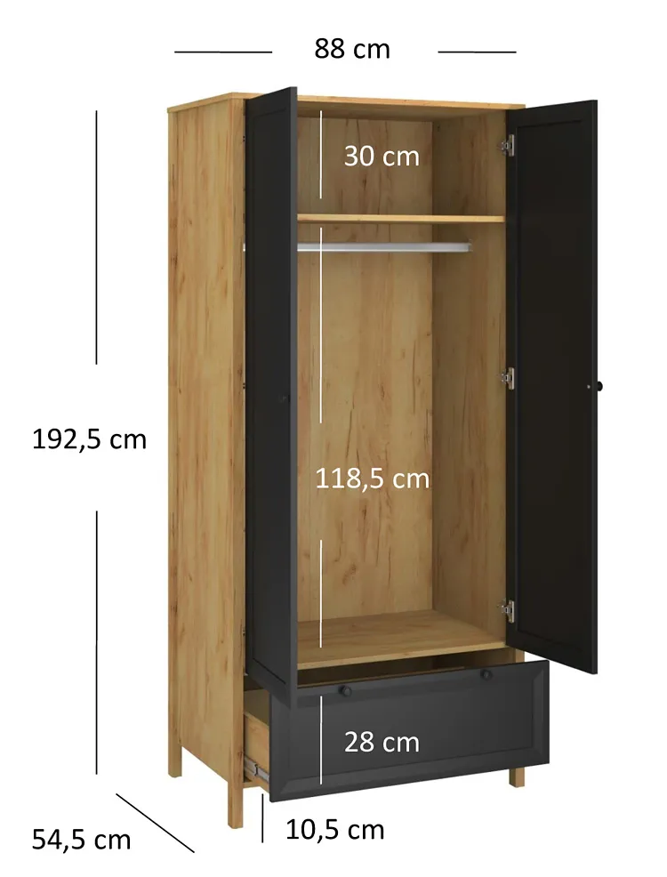 • Kolor: Dąb craft, czarny. Kliknij w link i sprawdź także inne szafy dwudrzwiowe w sklepie Edinos.pl.