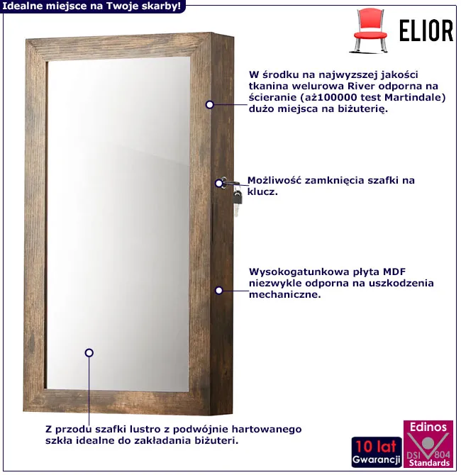 • Modny kolor: rustykany brąz. Kliknij w link i sprawdź także inne lustra wiszące w sklepie Edinos.pl. Stwórz swój praktyczny zestaw mebli.