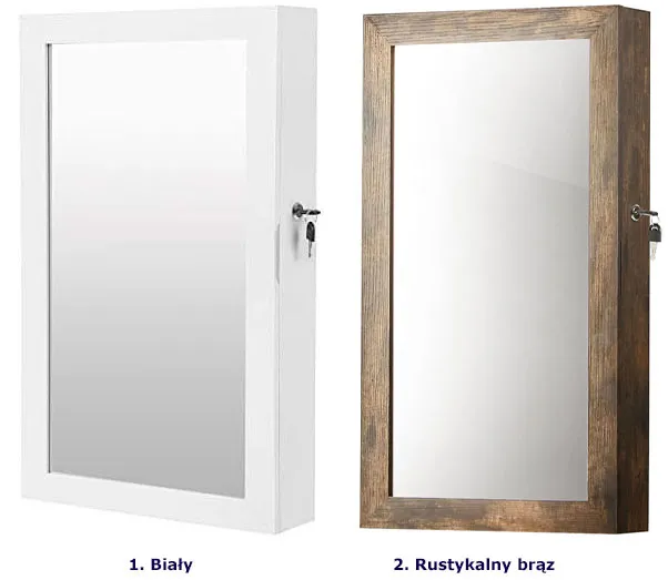 Szafka bardzo dobrze sprawdza się jako miejsce na przechowywanie biżuterii. Dużo przegródek i wieszaków, a całość wykonana starannie i estetycznie. Lustro jest duże i praktyczne, a klucz działa bez zarzutu. Czas realizacji był zgodny z informacją na stronie. Jestem zadowolona z jakości i funkcjonalności produktu.