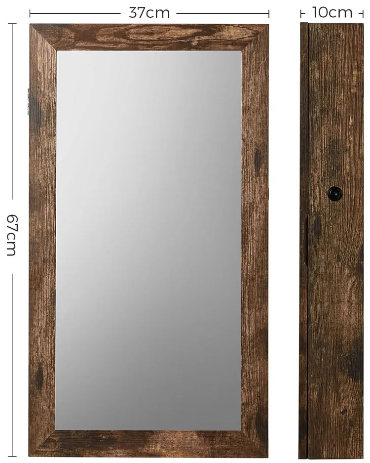 Industrialna szafka z lustrem na biżuterię zamykana na klucz - Lexter