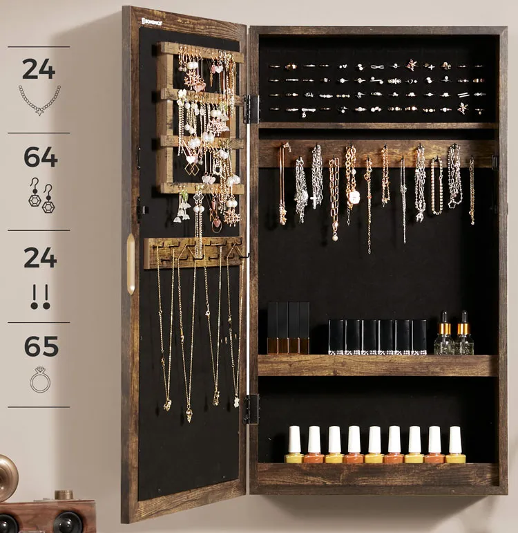 • Wszechstronne Przechowywanie: szafka zapewnia obfite miejsce na przechowywanie biżuterii, zegarków, okularów i kosmetyków, dzięki czemu wszystko jest uporządkowane i łatwo dostępne.