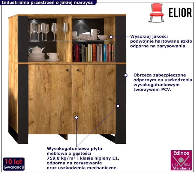 • Kolor: dąb craft złoty + czarny. Kliknij w link i sprawdź także inne witryny w sklepie Edinos.pl.
