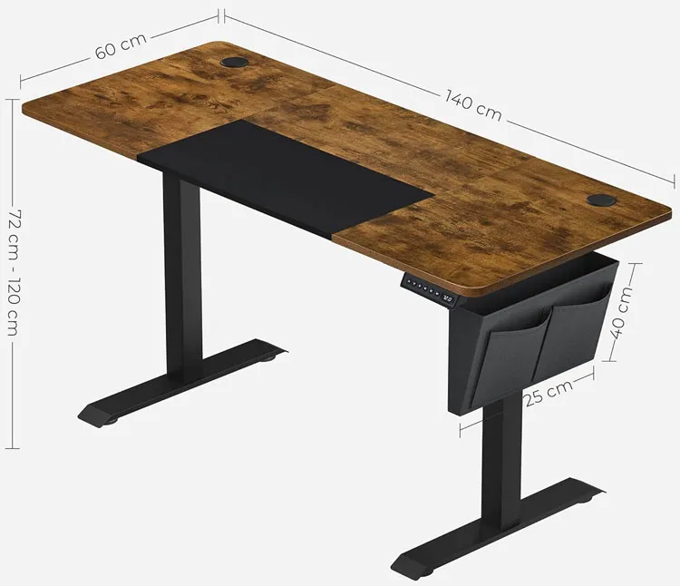 • Wymiary: szerokość 140 cm, głębokość 60 cm, regulowana wysokość 72-120 cm