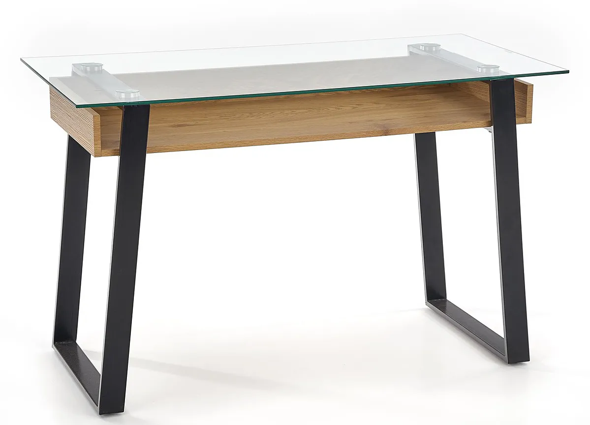 Industrialne biurko szklane na metalowej podstawie - Mobium