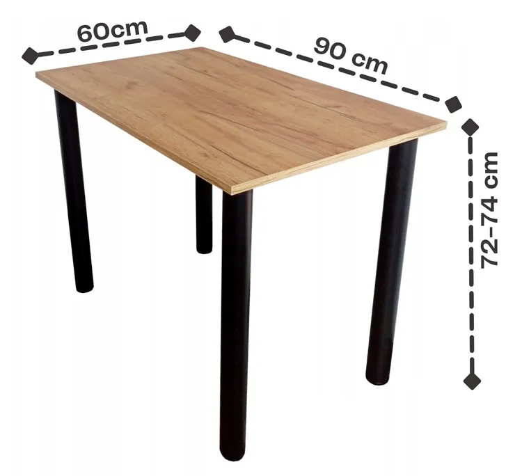 • szerokość: 90 cm, głębokość: 60 cm, wysokość: 72-74 cm