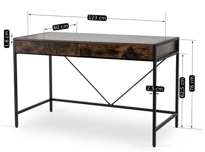 Industrialne duże biurko z szufladami dąb rustykalny + czarny - Betris