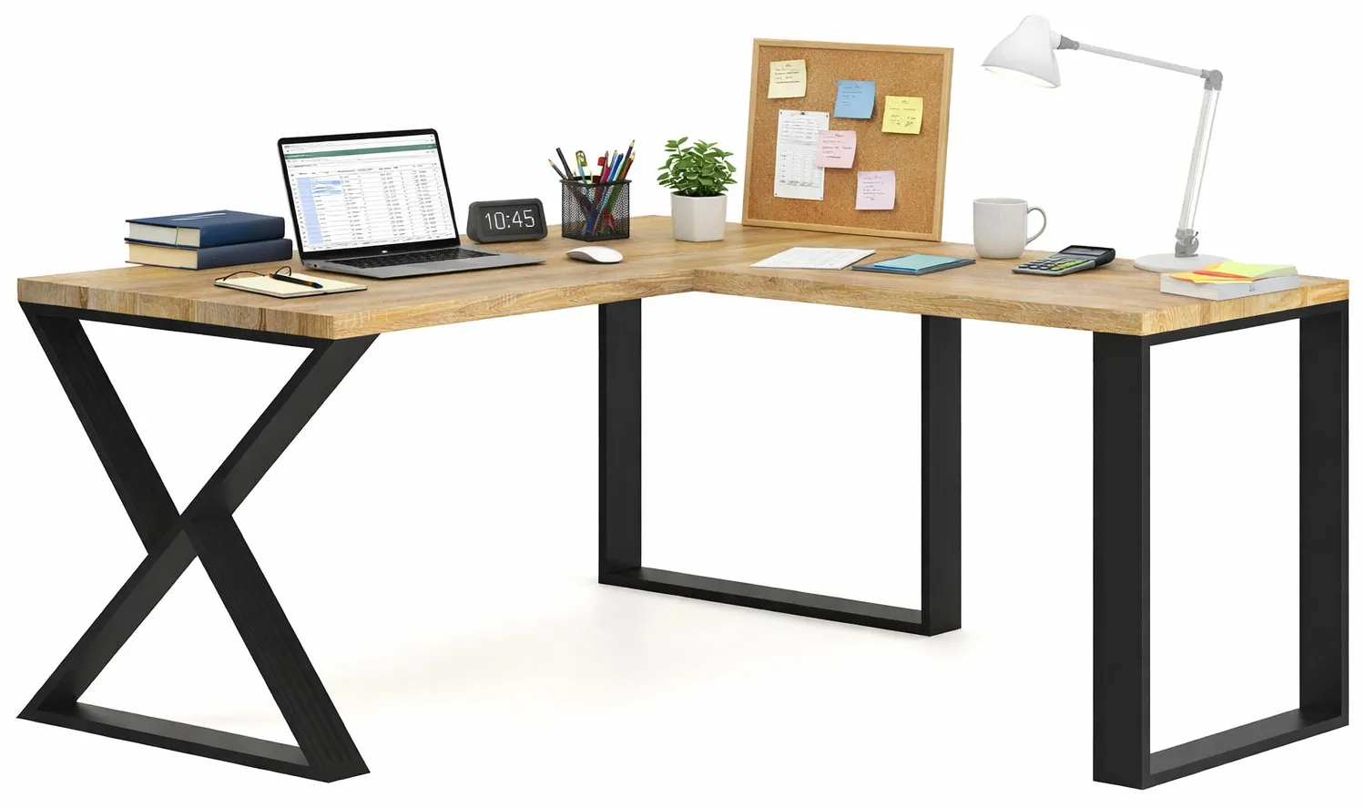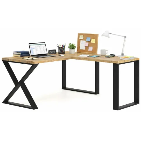 Industrialne narożne biurko komputerowe dębowe 160x70 + 70x90 - Uvox
