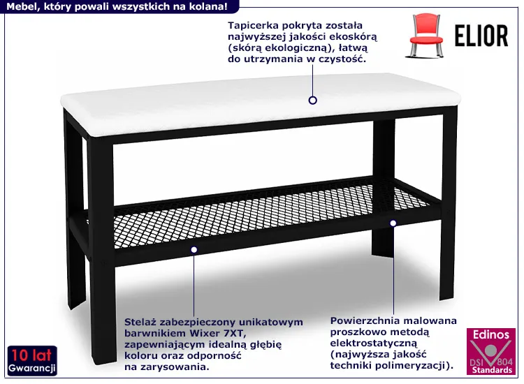 • Kolor: stelaż: czarny mat, siedzisko: biały. Kliknij w link i sprawdź także inne siedziska do przedpokoju w sklepie Edinos.pl. Stwórz swóją praktyczną przestrzeń.