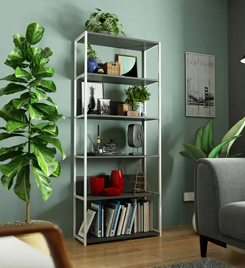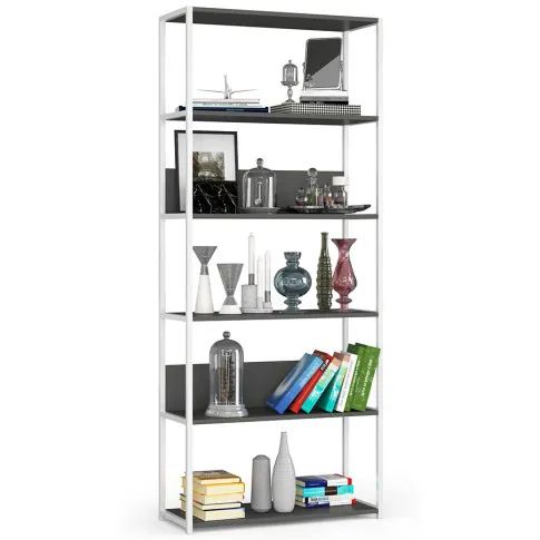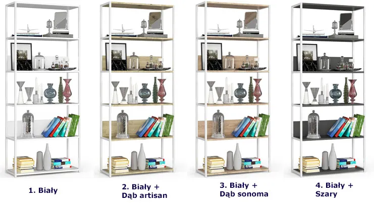Dotyczy: Szeroki regał metalowy biały + dąb artisan - Shira 5X