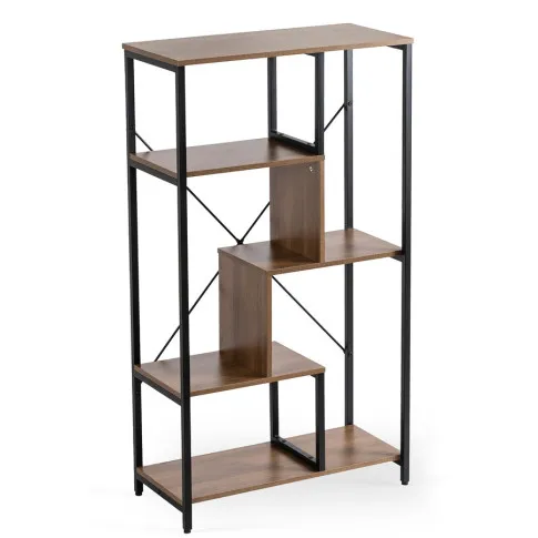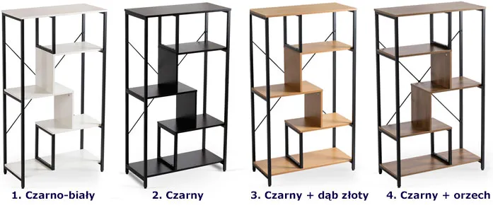 Industrialny regał otwarty na książki czarny+orzech Korente