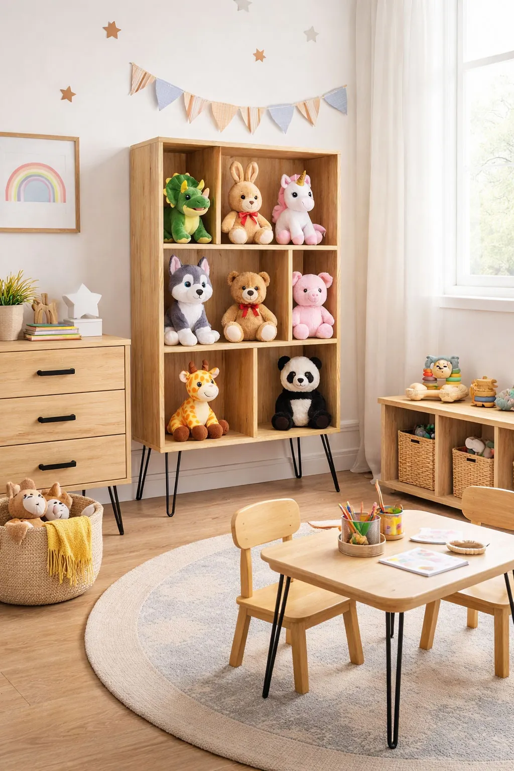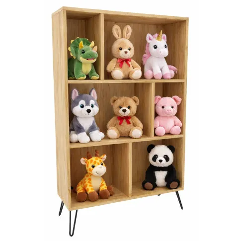 • trzy półki oraz pionowe przegrody tworzą wygodne strefy do przechowywania pluszaków, książeczek, gier i innych dziecięcych skarbów, pomagając utrzymać porządek w pokoju.
