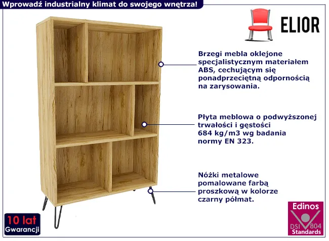 Regał na zabawki Zorina 12X marki Edinos Premium został zaprojektowany z myślą o rodzicach, którzy cenią minimalistyczne, a jednocześnie funkcjonalne rozwiązania do pokoju dziecka. Jego industrialny charakter w połączeniu z ciepłym wykończeniem sprawia, że mebel nie wygląda jak typowy dziecięcy regał, lecz jak stylowy element wyposażenia wnętrza. Solidne metalowe nóżki dodają konstrukcji stabilności i podkreślają nowoczesny wygląd, a jednocześnie sprawiają, że regał prezentuje się lekko i elegancko.