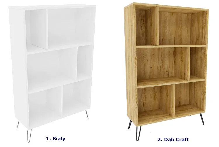 • konstrukcja nóżek została zaprojektowana tak, aby nie wystawały poza obrys mebla i były cofnięte z tyłu, co ułatwia dosunięcie regału do ściany oraz łączenie go z innymi meblami,