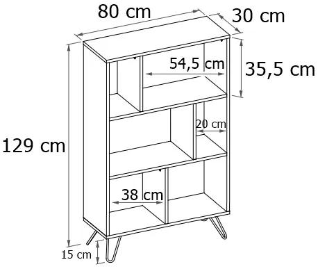 • Wymiary całkowite: szerokość: 80 cm, głębokość: 30 cm, wysokość: 129 cm.