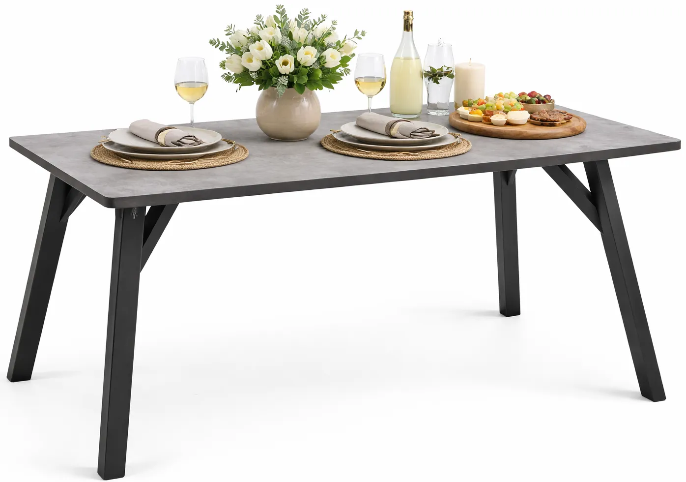 Beton jest idealny, podstawa stołu jest designerska i super się komponuje z blatem ;)