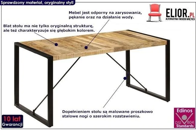 Dotyczy: Industrialny stół z drewna mango 90x180 - Fulo 4X