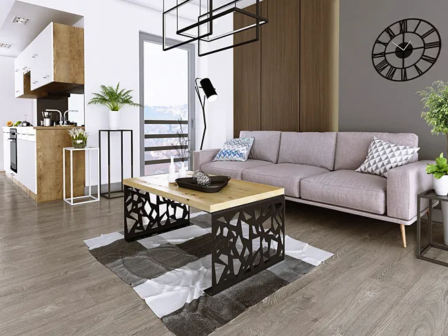 Dotyczy: Loftowy stolik kawowy z ozdobnym stelażem czarny + dąb sonoma - Ofelio 3X