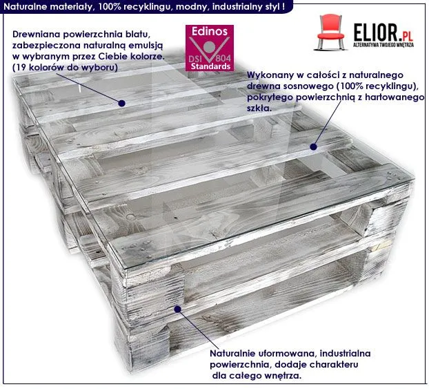 Głęboki urok i prawdziwy, nieprzeciętny styl płynący z niezwykłej formy stolika Palletis, rozpali w Tobie dodatkowe pokłady inspiracji, a Twoje wnętrze nabierze nowego i jakże urzekającego designu. Łyk każdej kawy wypitej przy zniewalającym i urzekającym stole marki Elior, doda Ci harmonii oraz pozwoli odetchnąć od codziennego chaosu i pośpiechu.