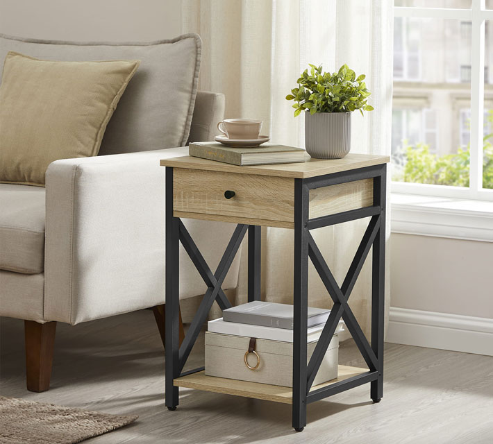 Industrialny stolik nocny z szufladą dąb sonoma - Caldera