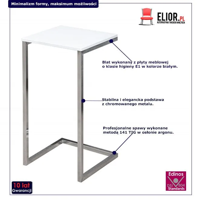 - Modna kolorystyka: biel i chrom. Kliknij w link i sprawdź także inne stoliki industrialne w sklepie Edinos.pl. Stwórz swój praktyczny zestaw mebli.