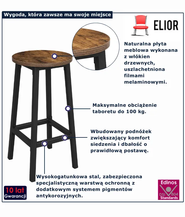 • Wysokie siedzisko – idealne do kuchennej wyspy czy wysokiego stołu.