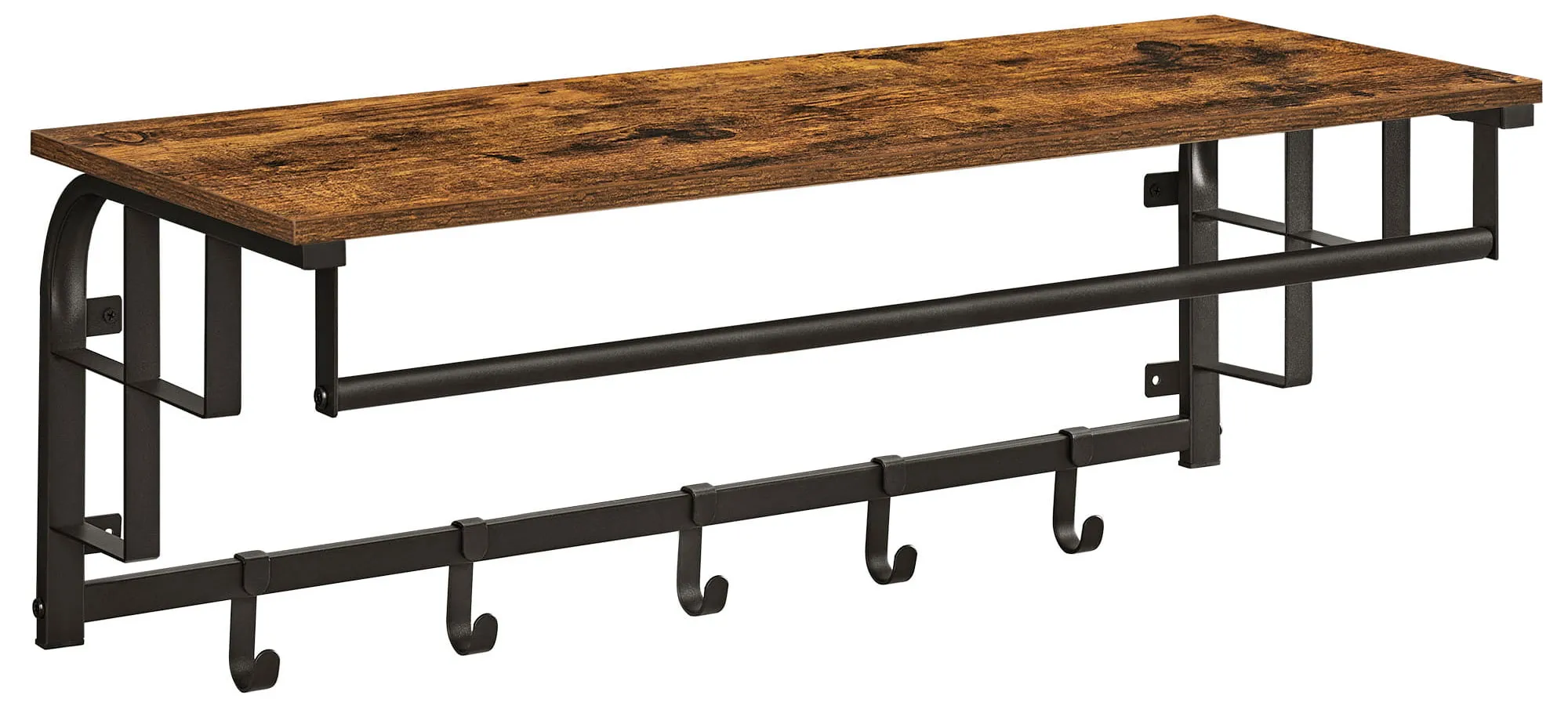 Prosty i funkcjonalny wieszak z półką na różne drobiazgi. Konstrukcja lekka ale stabilna. Pasuje do małego przedpokoju i dobrze się prezentuje. Polecam osobom szukającym praktycznego dodatku w surowym stylu.
