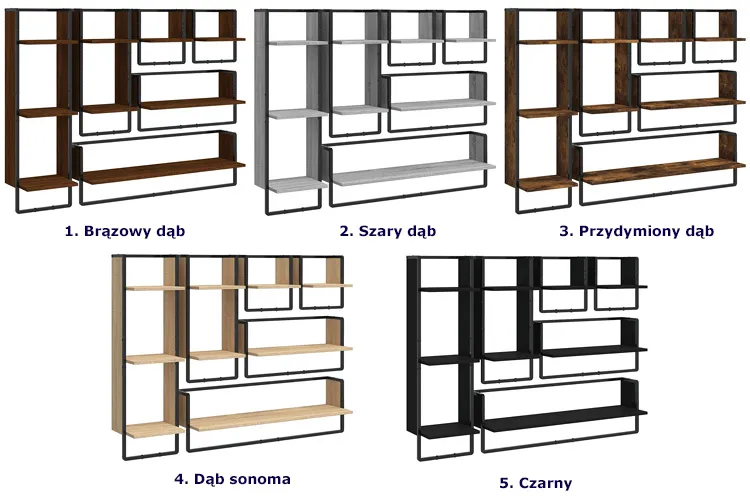 Kolory zestawu 6 wiszących półek Valkiria