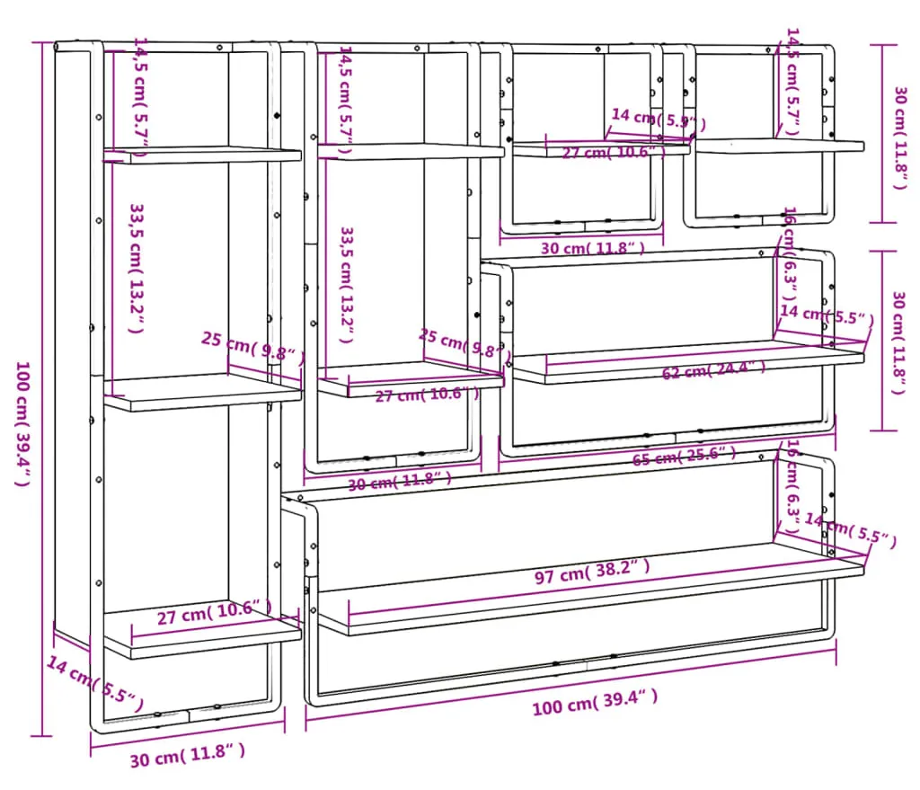 • Wymiary większej półki: 65/100 x 25 x 30 cm (szer. x gł. x wys.)