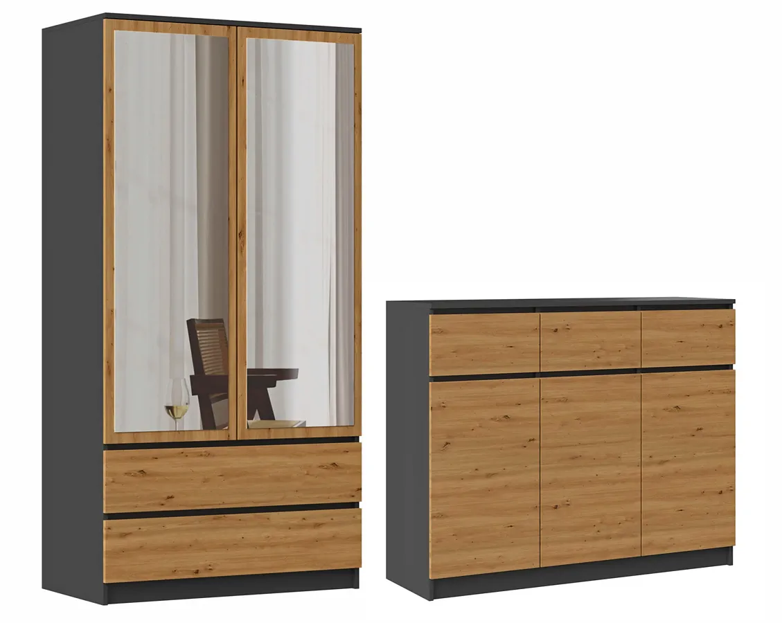 - Kolor: Antracyt + Dąb Artisan. Jeśli chcesz zobaczyć inne komplety komody i szafy z naszej oferty kliknij w powyższy link.