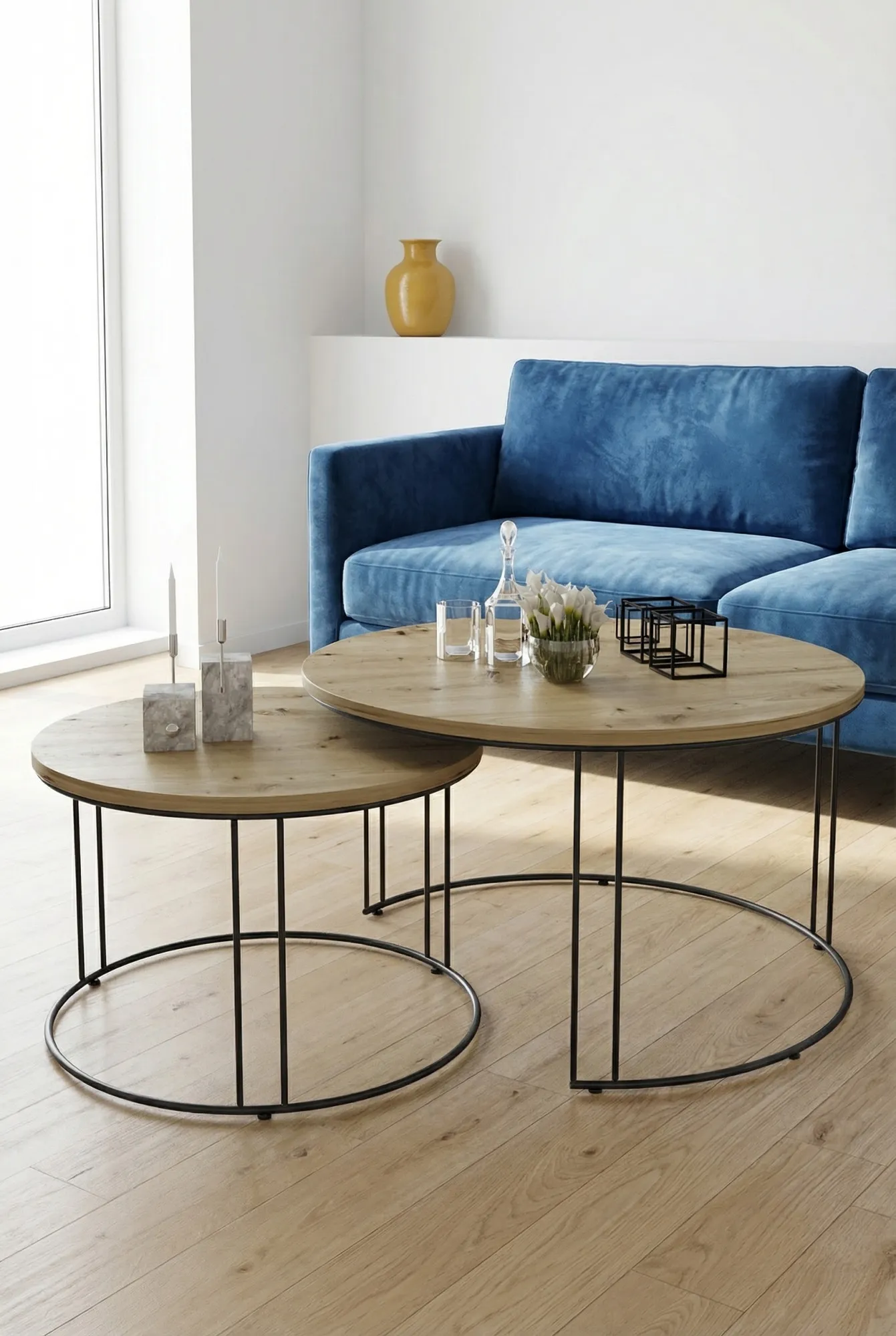 Dotyczy: Loftowy komplet stolików kawowych czarny + dąb lancelot - Eksa 4X