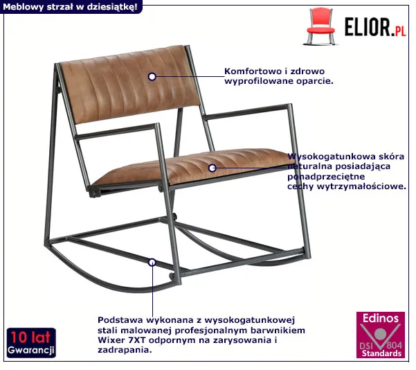Dotyczy: Brązowy stalowy fotel bujany ze skóry naturalnej - Ruli