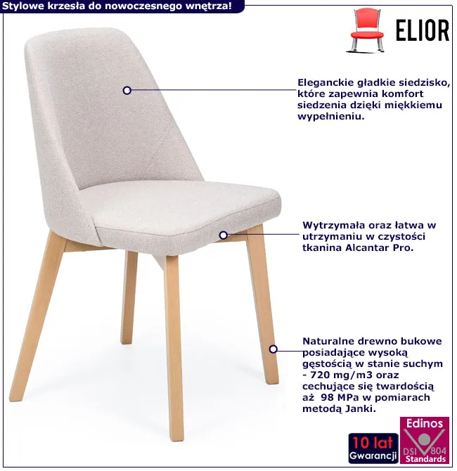 • Szlachetne drewno bukowe: Jego naturalne piękno dodaje krzesłu elegancji, a solidność gwarantuje trwałość na lata.