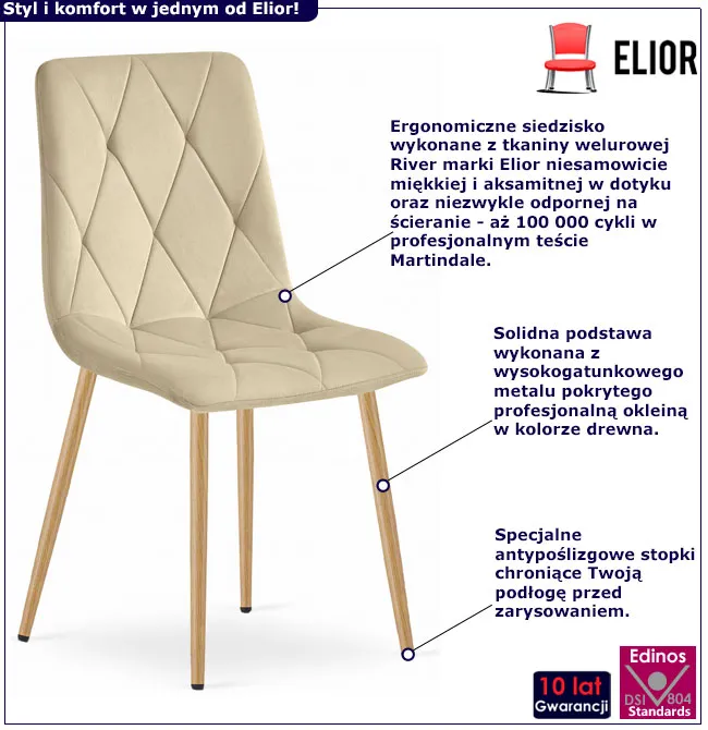 Dotyczy: Beżowe krzesło welurowe nowoczesne - Kivo