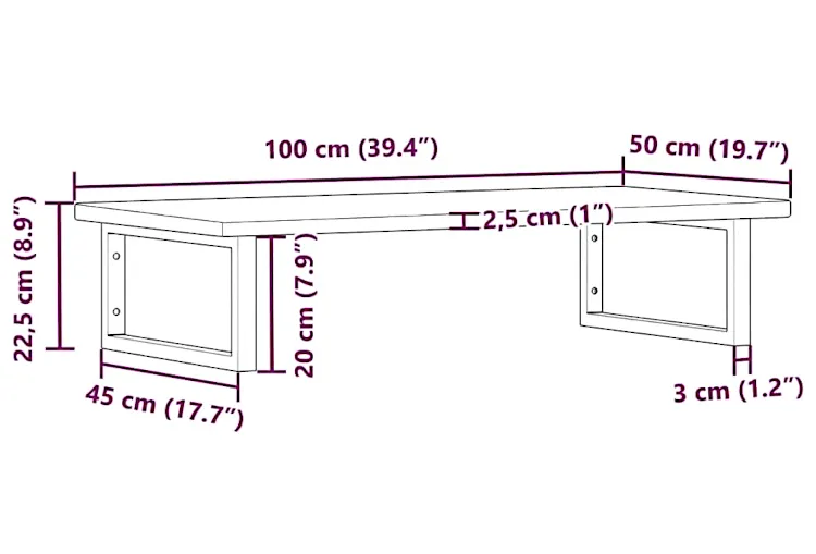 Dotyczy: Naturalne drewno półka 100x50 czarne uchwyty - Bafo