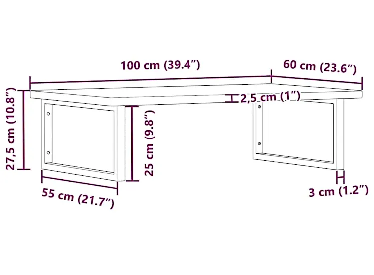 • Wymiary blatu: szerokość: 100 cm, głębokość: 60 cm, wysokość: 2,5 cm.