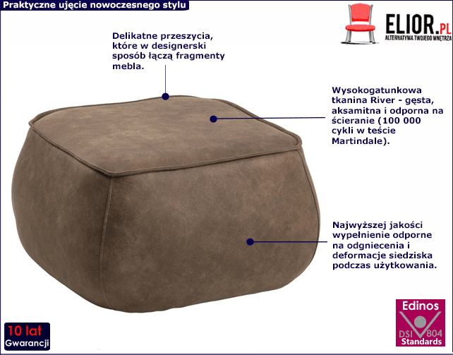 • Modna kolorystyka: jasnobrązowy. Kliknij w link i sprawdź także inne pufy w sklepie Edinos.pl. Stwórz swój praktyczny zestaw mebli.