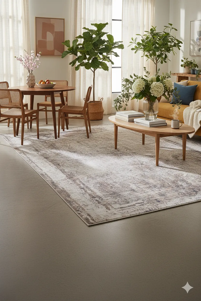Produkt zgodny z opisem. Dywan jest lekki, ale dobrze przylega do podłogi. Wzór przecierany nadaje wnętrzu nowoczesny charakter. Obsługa klienta szybko odpowiadała na pytania. Paczka dotarła w terminie i była odpowiednio zabezpieczona.