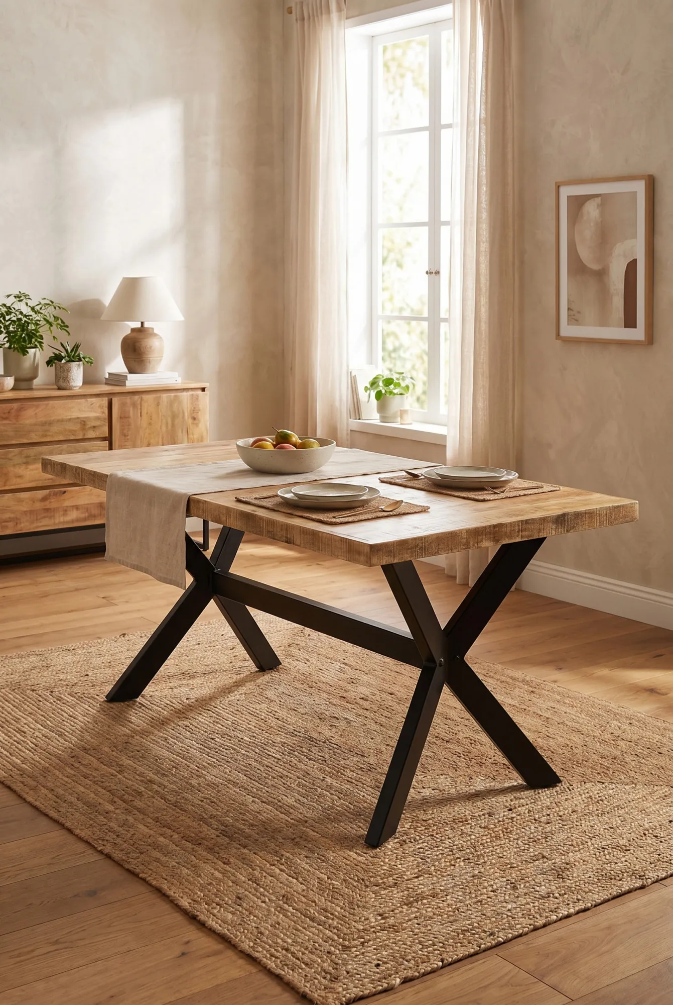 - Materiał: lite, surowe drewno mango + nogi z malowanej proszkowo stali.