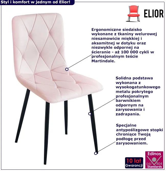 Dotyczy: Szare welurowe krzesło metalowe tapicerowane - Rexon