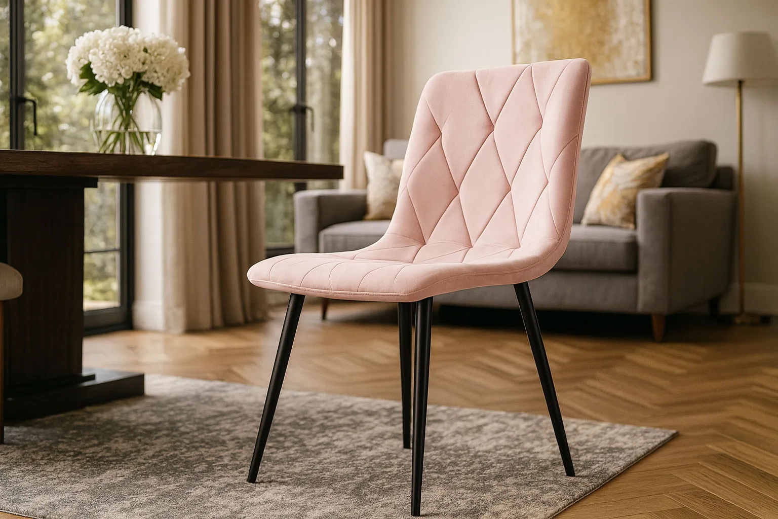 Dotyczy: Beżowe pikowane krzesło tapicerowane welurem - Rexon