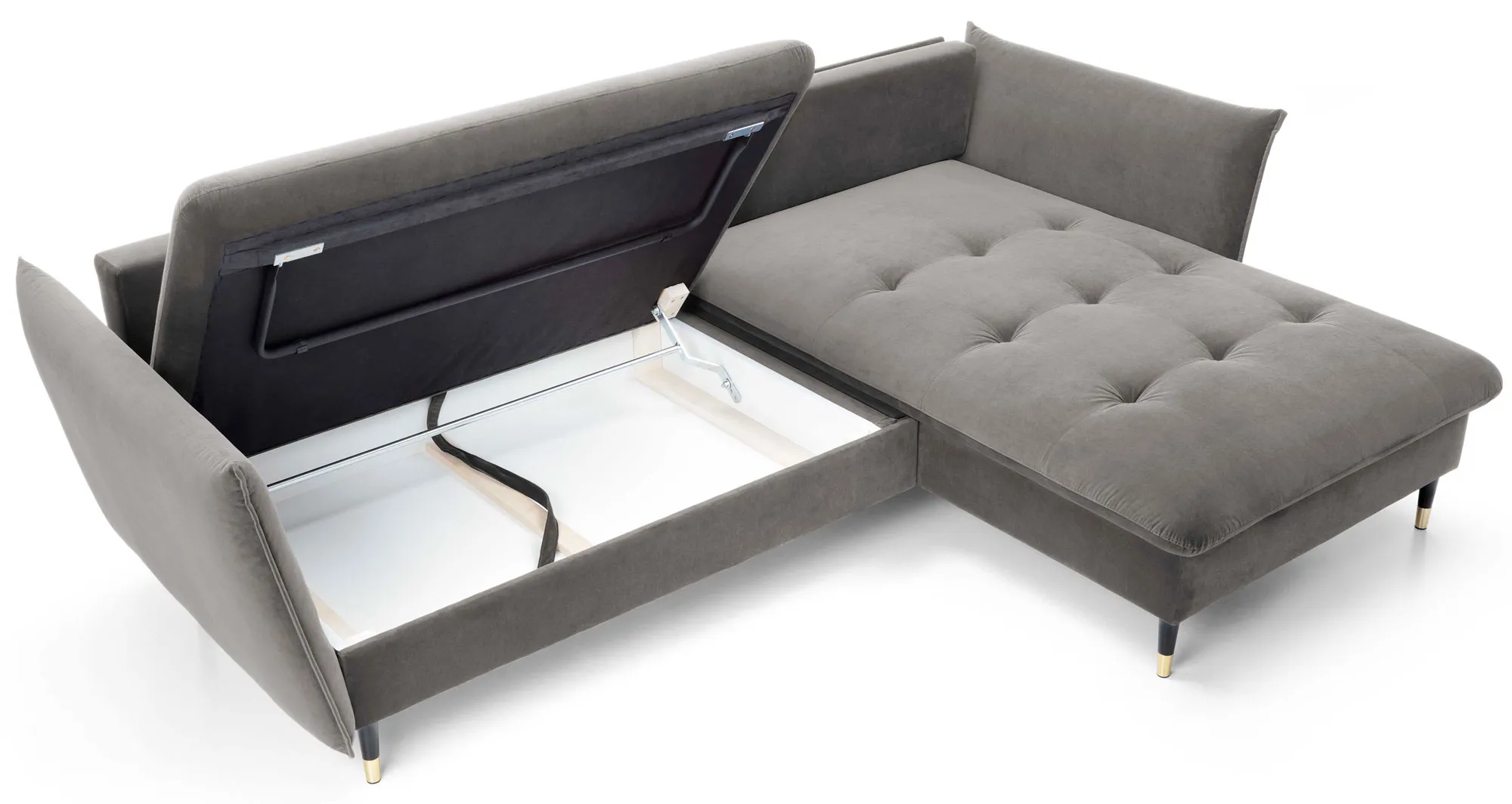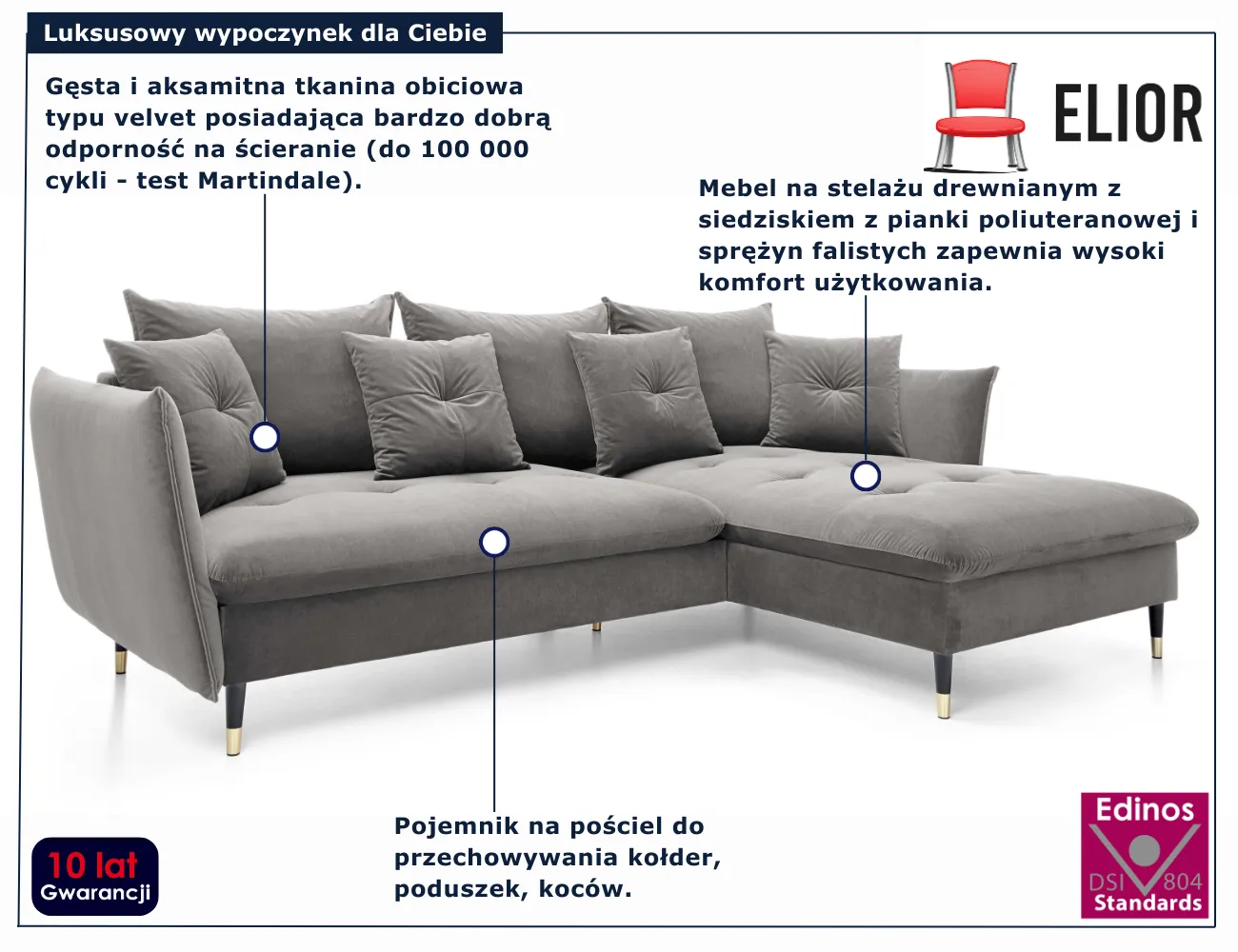 Dotyczy: Zielony welurowy narożnik z funkcją spania butelkowa zieleń - Geriosso