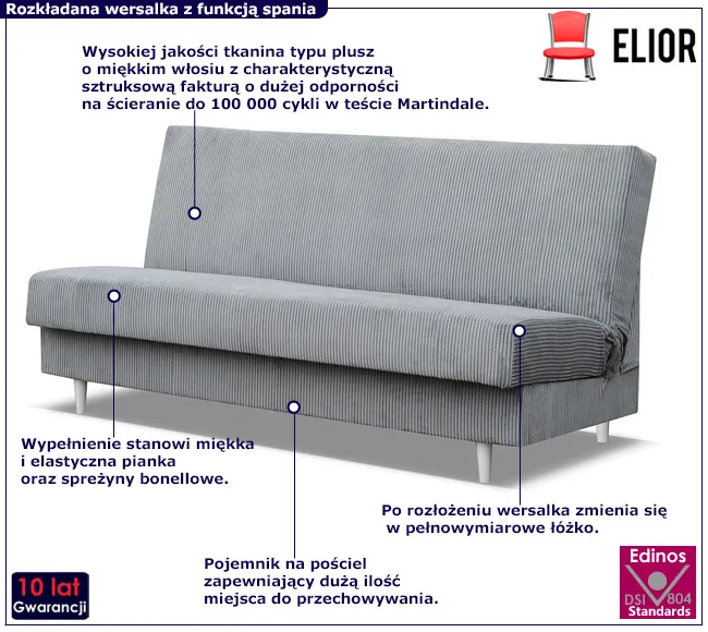 Dotyczy: Beżowa tapicerowana wersalka sztruksowa z funkcją spania - Flara