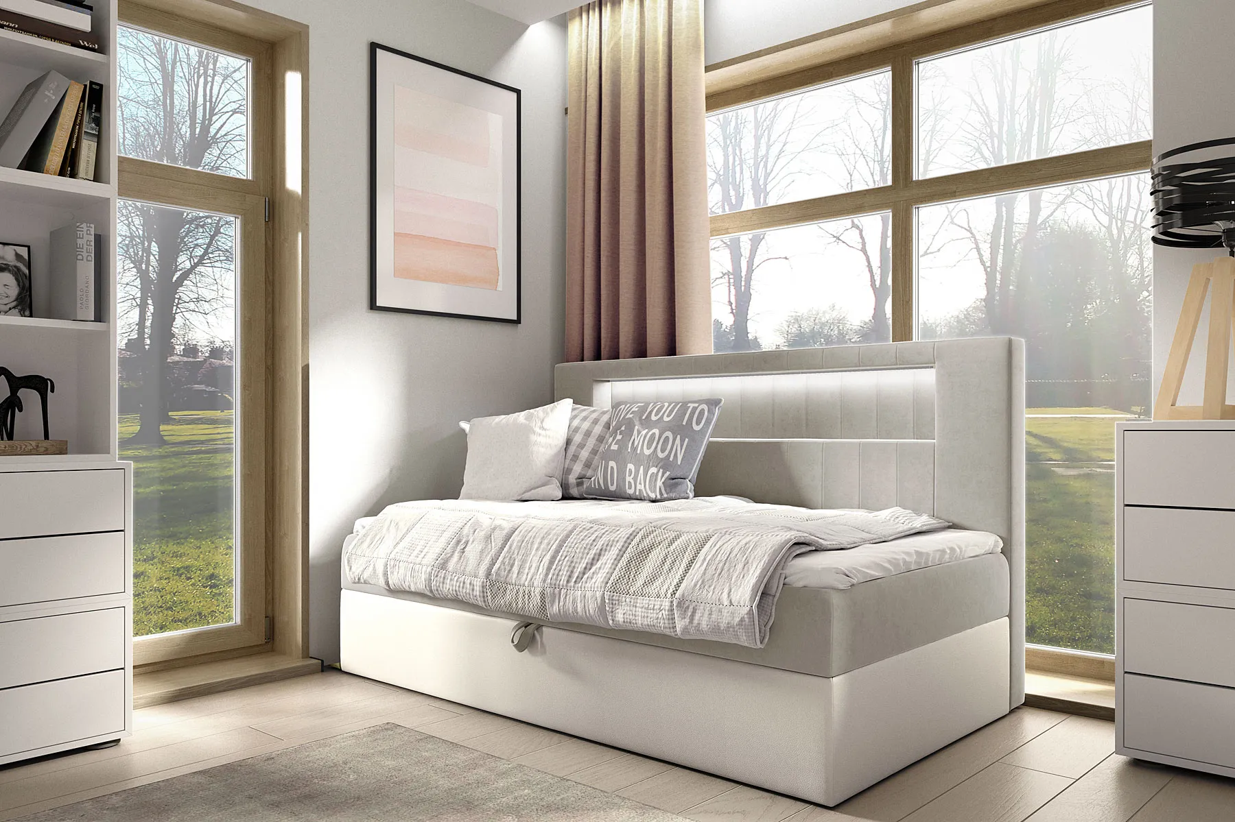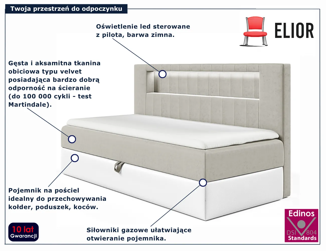 Dotyczy: Oliwkowe tapicerowane łóżko z pojemnikiem 3 rozmiary - Lorvani