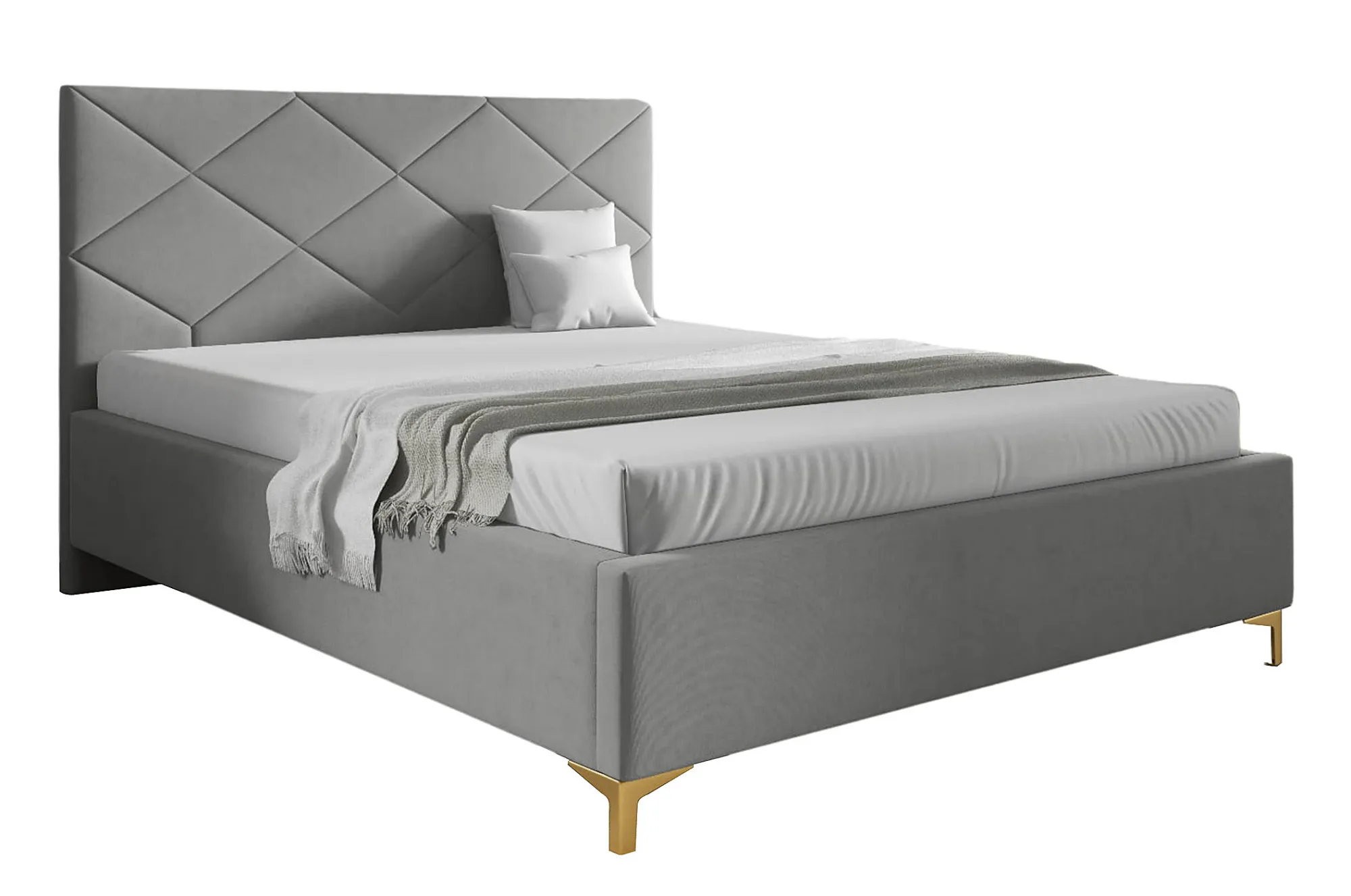 • Metalowe nogi w eleganckim, złotym wykończeniu nadają łóżku nowoczesny, luksusowy charakter.
