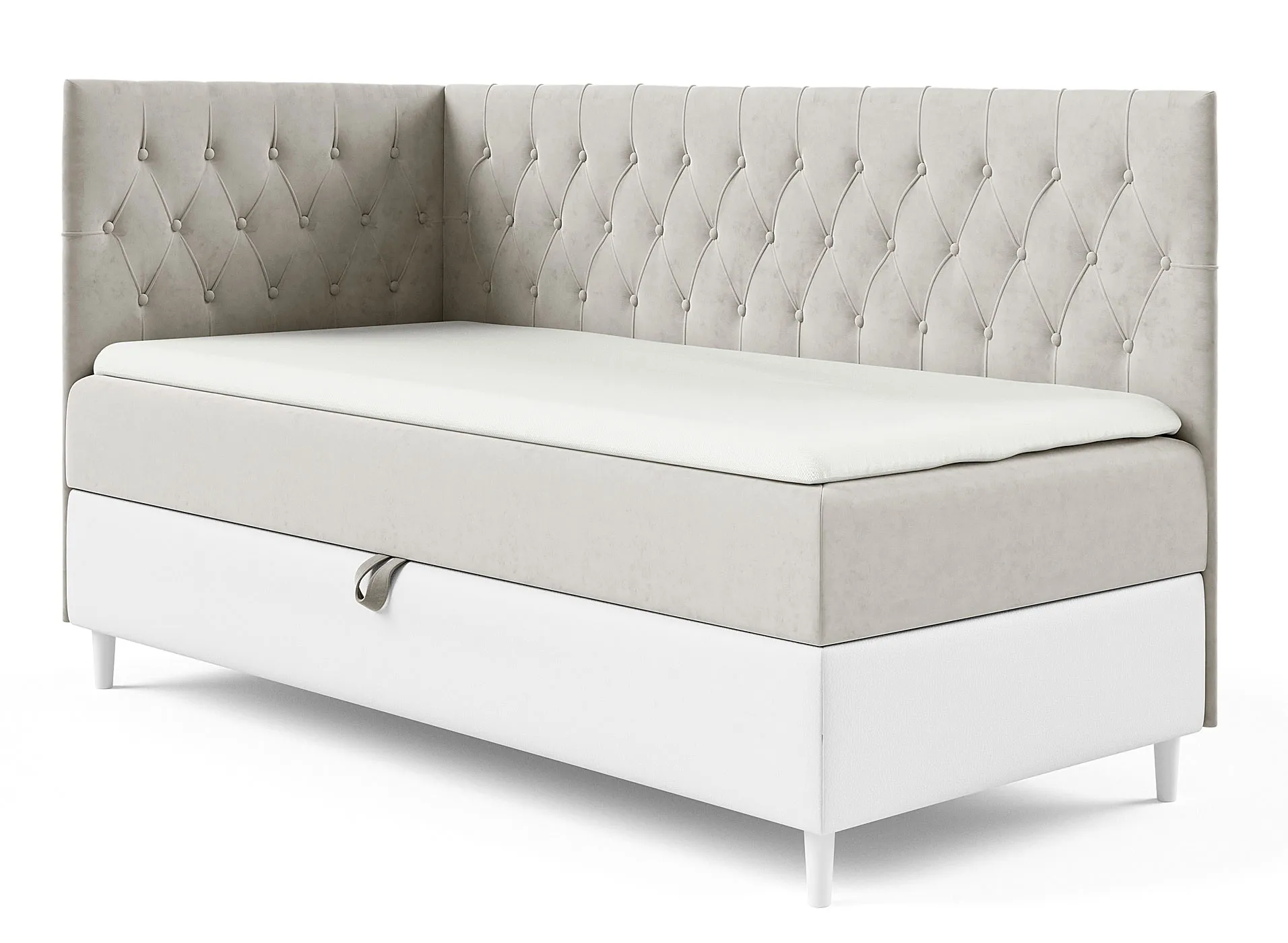 Jasnoszare łóżko z pikowanym zagłówkiem 3 rozmiary - Velmari