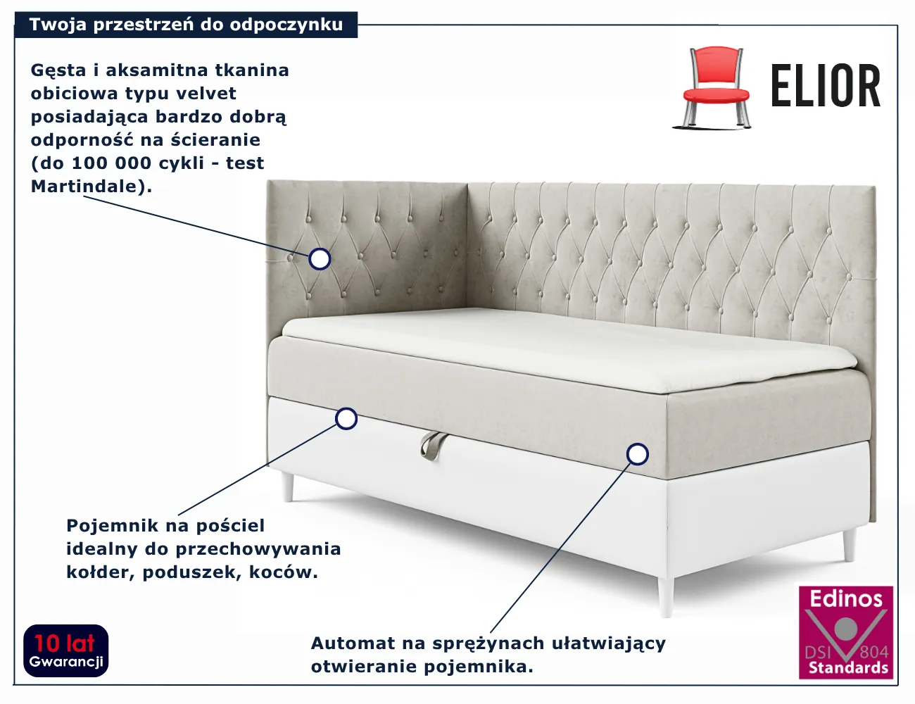 Łóżko Velmari marki Edinos Premium to połączenie ponadczasowej elegancji i codziennego komfortu. Idealnie sprawdzi się w sypialni, pokoju młodzieżowym lub gościnnym, tworząc przestrzeń, która zaprasza do odpoczynku. Wybierz Velmari – łóżko, które zachwyca stylem i wygodą, już od 2478 zł.