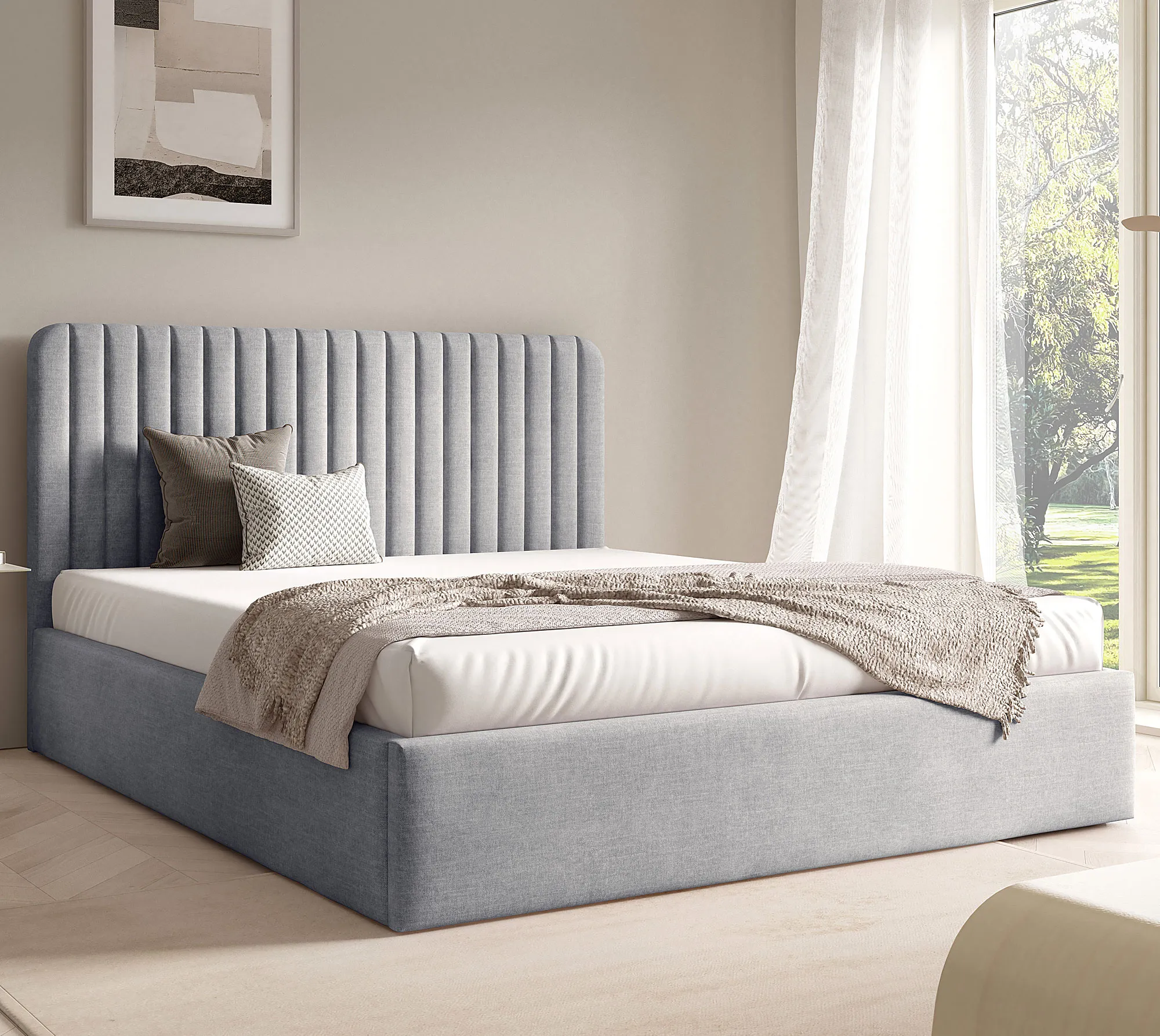 Dotyczy: Beżowe łóżko z pikowanym zagłówkiem 3 rozmiary - Revani