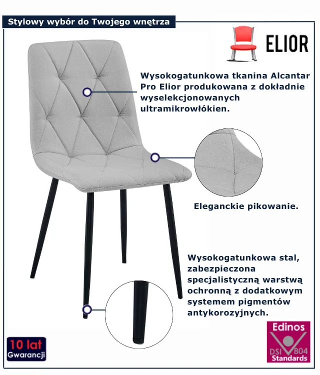 Dotyczy: Ciemnoszare pikowane krzesło tapicerowane tkaniną - Teribis 3X
