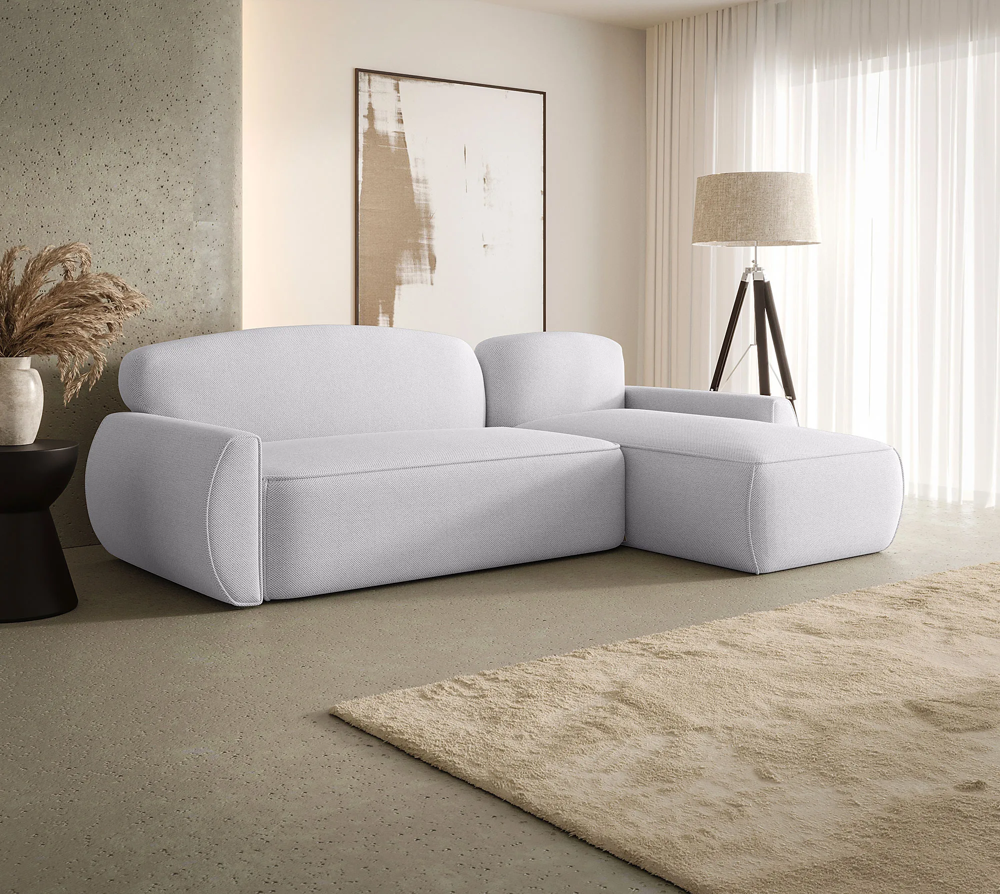 Aranżacja wnętrza z sofą w kolorze jasnoszarym Selvori 3X